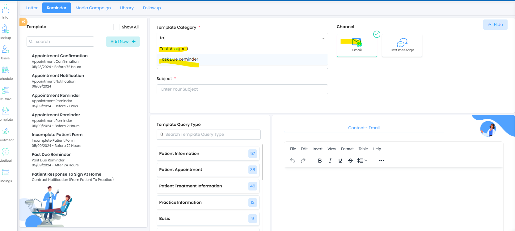 - Set up task email content for the Task Assigned and Task Due Reminder