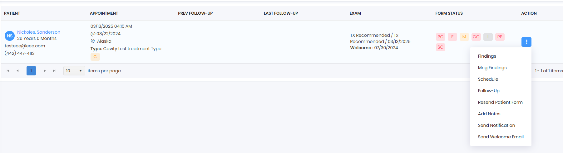 - Grid will show the patients list according to the filters applied. Actions will redirect to respective feature