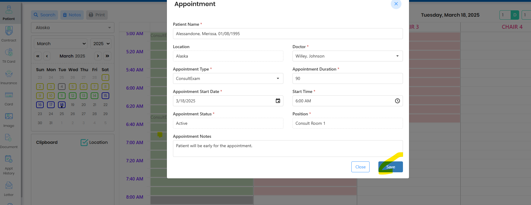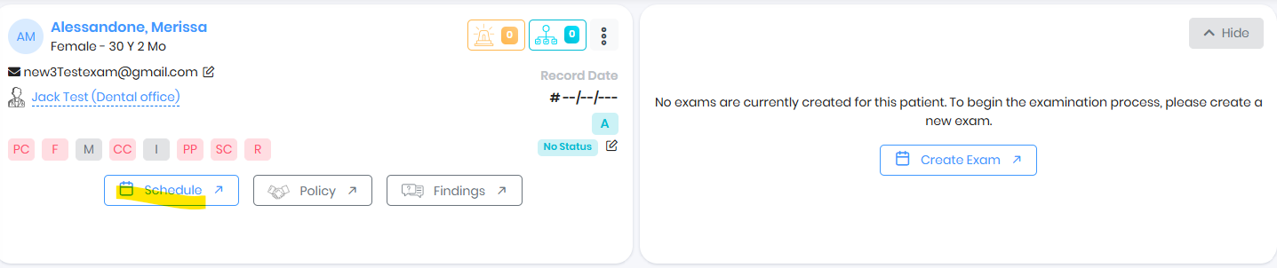 - Schedule Patient Exam, double click on the schedule slot and save the schedule