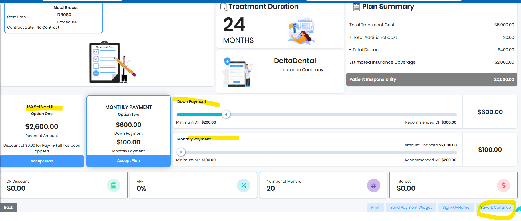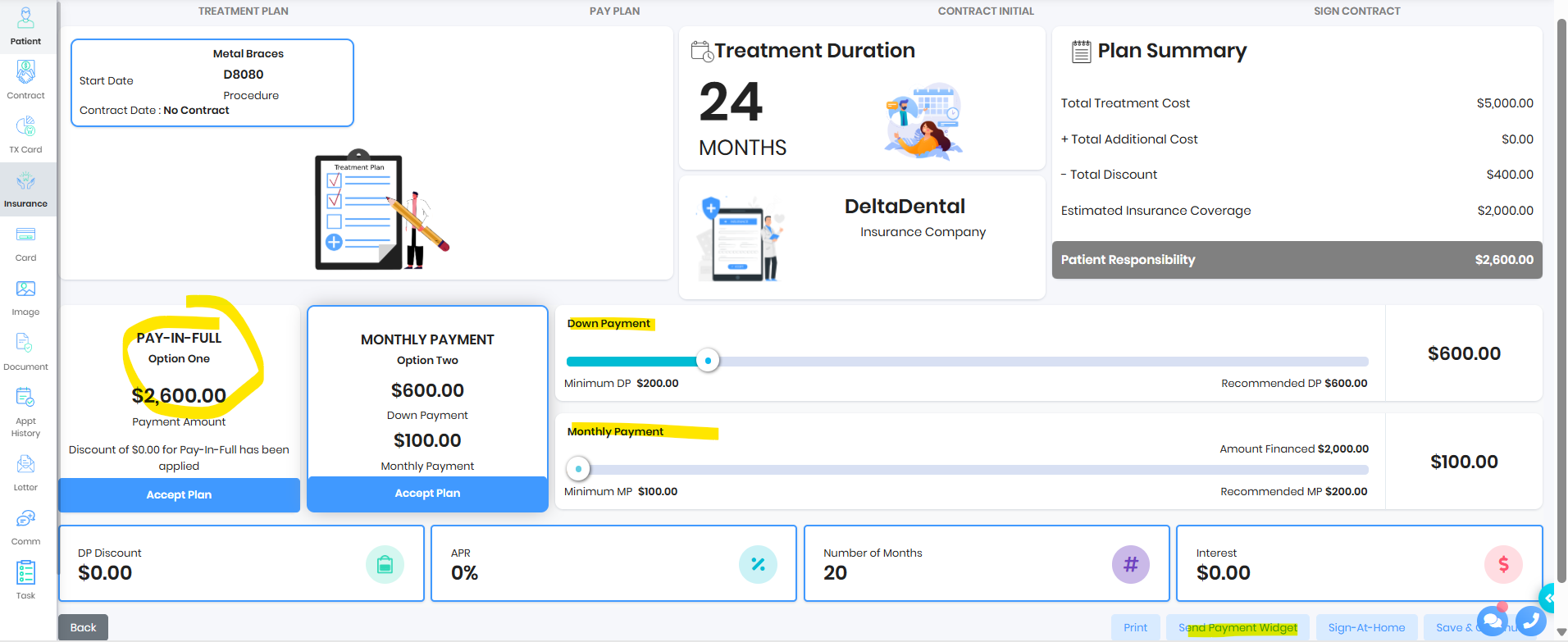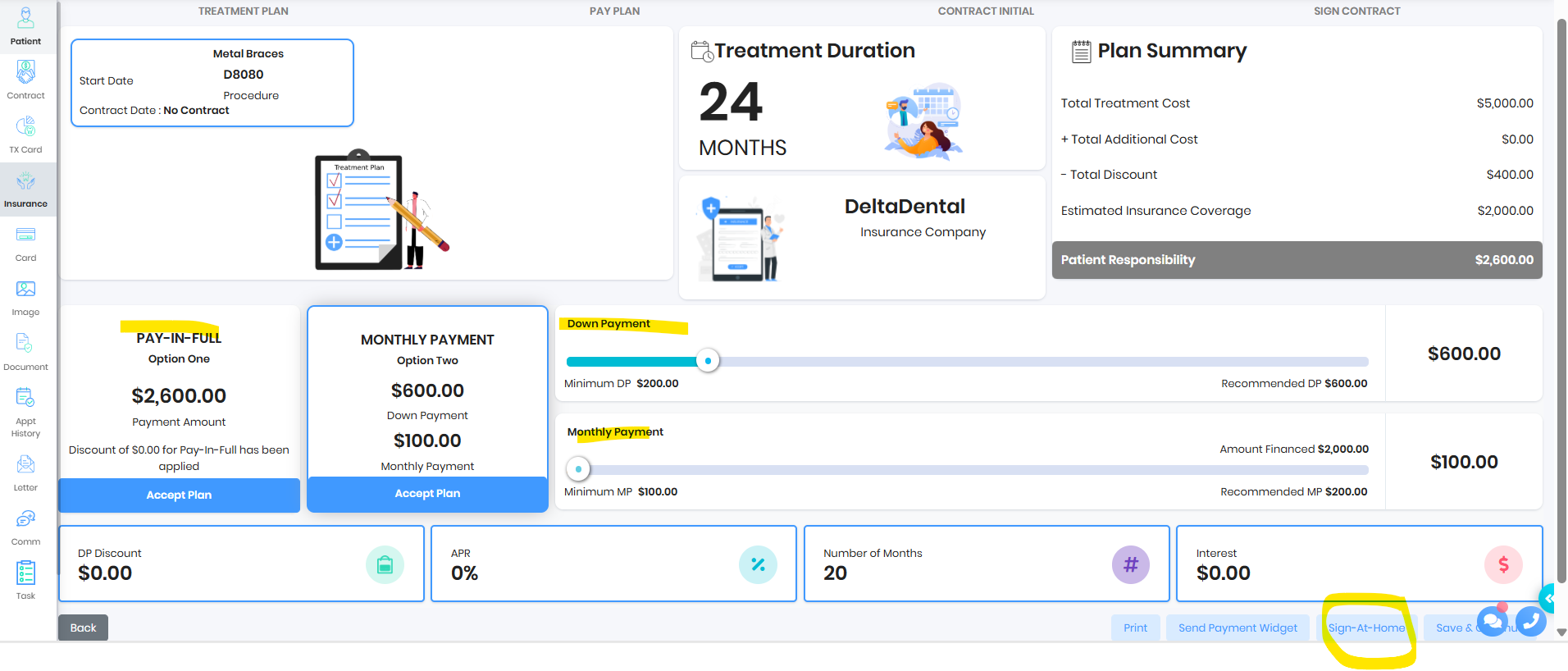 - Customize the payment plan as needed and Send Sign@Home to FRP