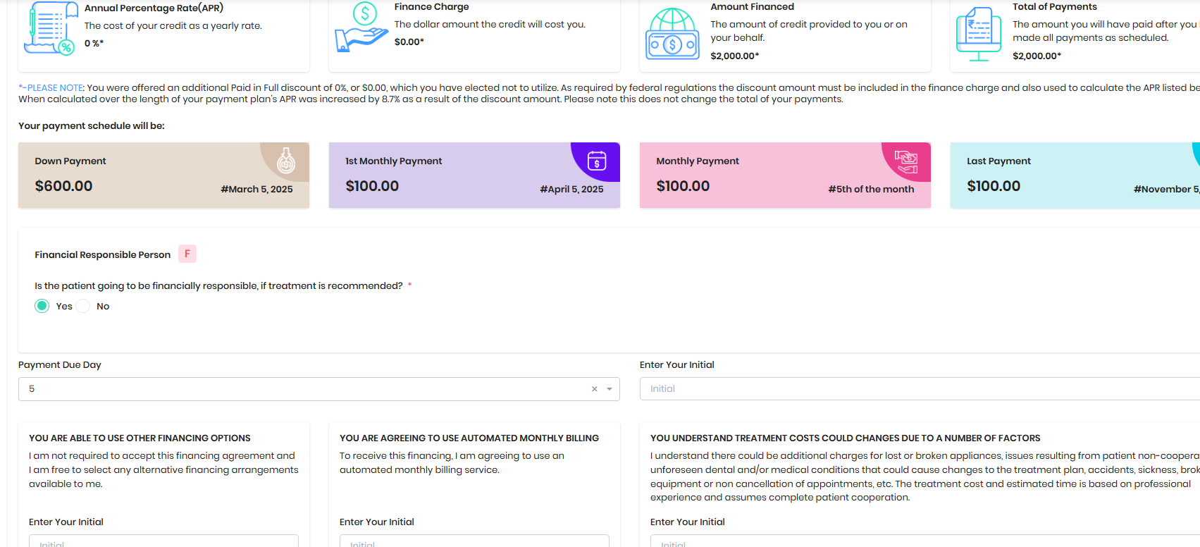 - Customize the payment plan as needed and Send Payment Plan to FRP