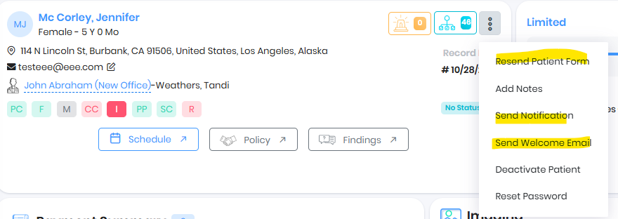 On the patient portal, click on 3 dots to find following options for the manual patients outreach.