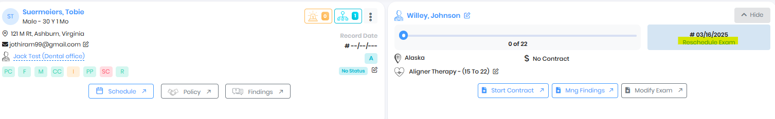- If the Patient exam appointment is canceled or no show, office should be able to reschedule the existing exam