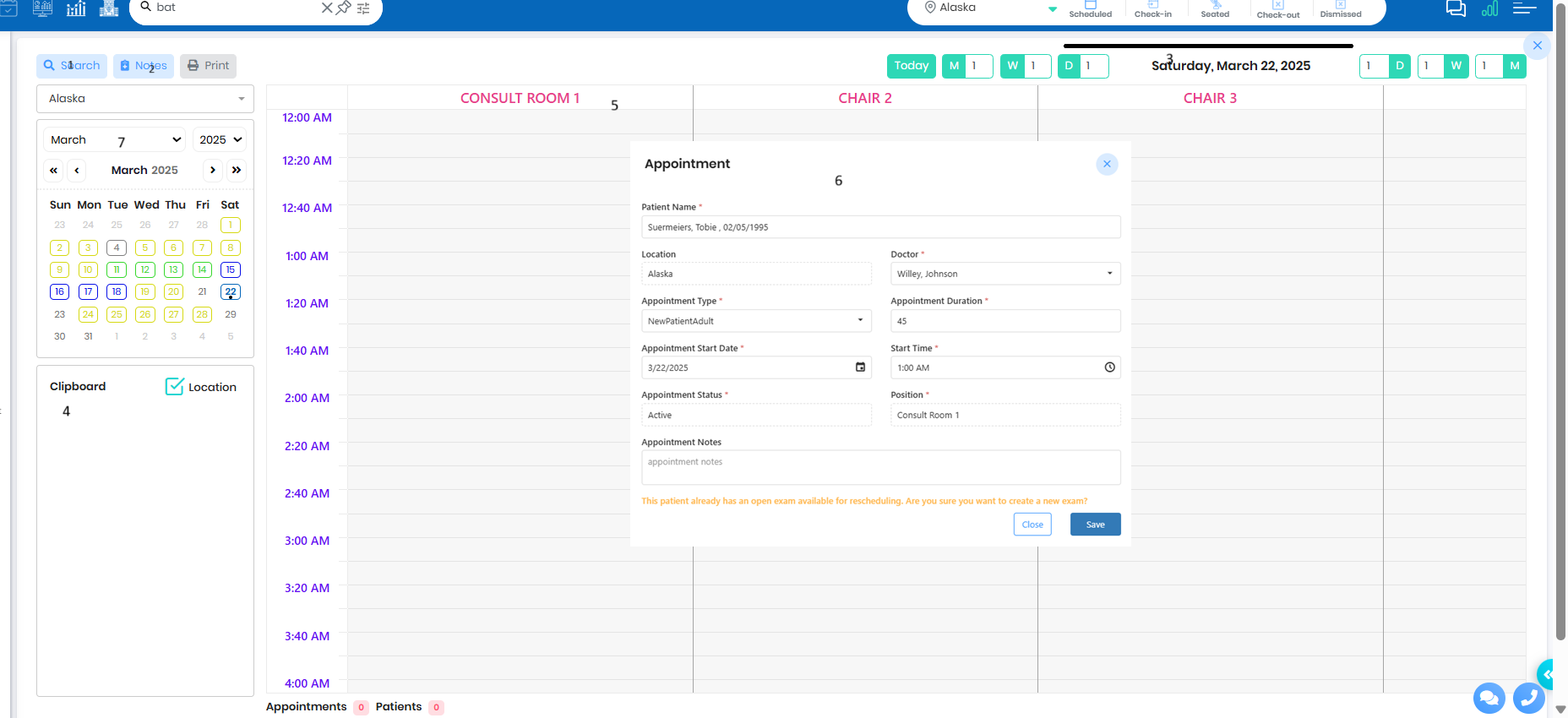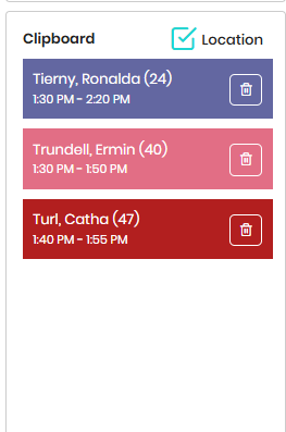 - Drag and Drop the patients from the schedule to the clipboard to reschedule the appointment