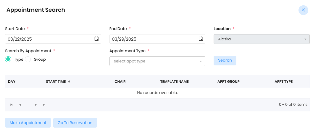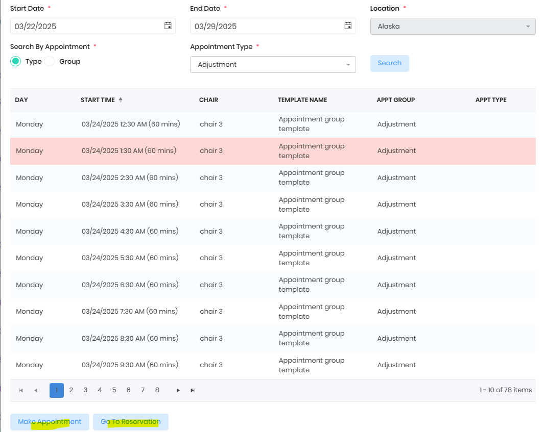 - Go to Reservation will take the user to the daily schedule for the selected day