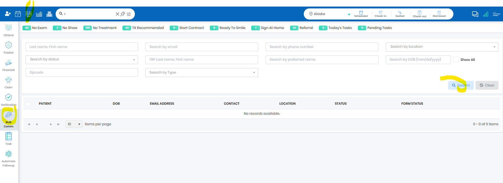 - Use Bulk update feature to search patients, Show All will bring inactive patients