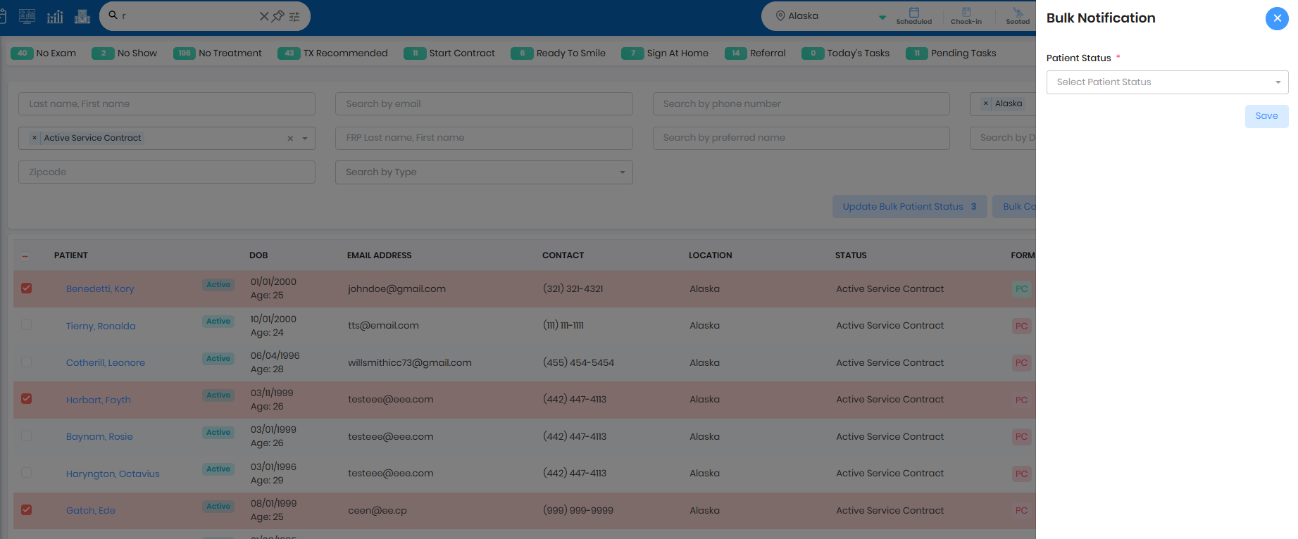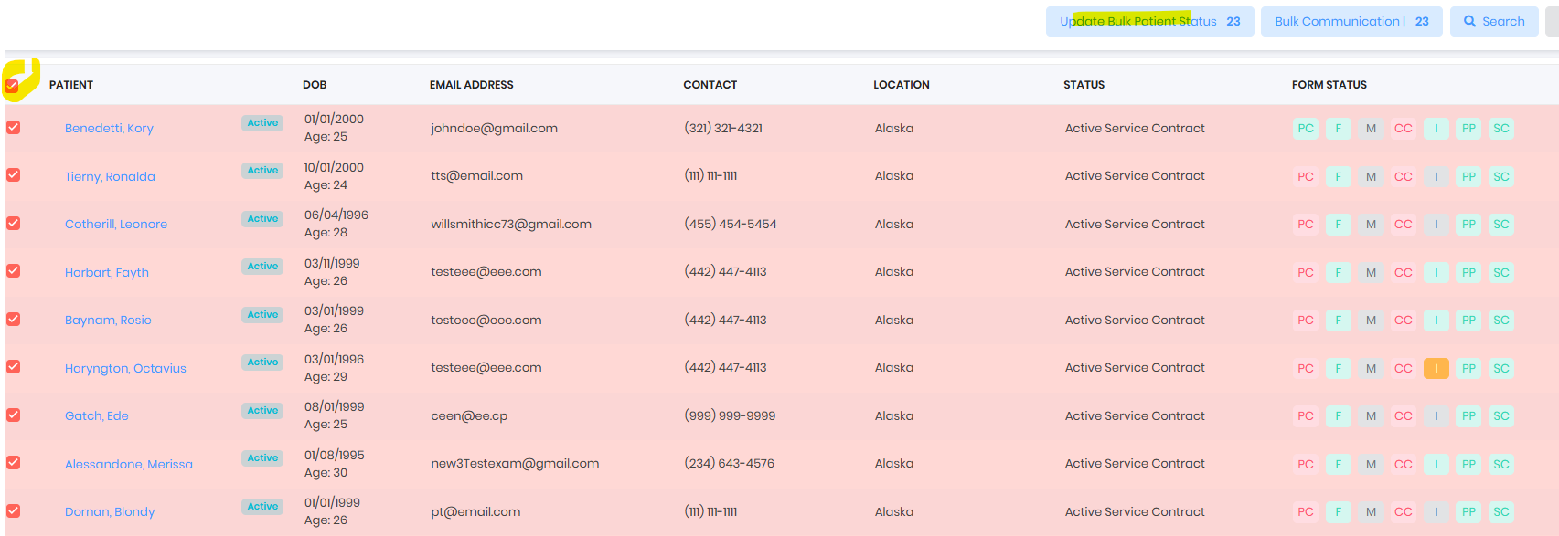 - Select 1, multiple or all patients and update the patient status