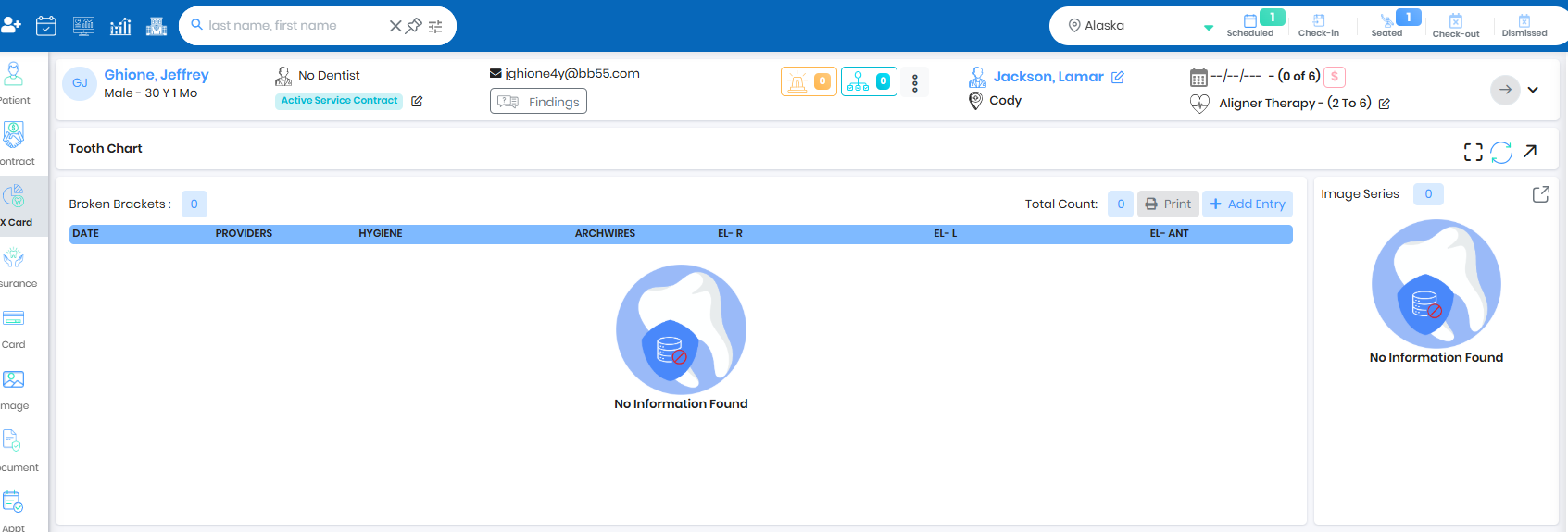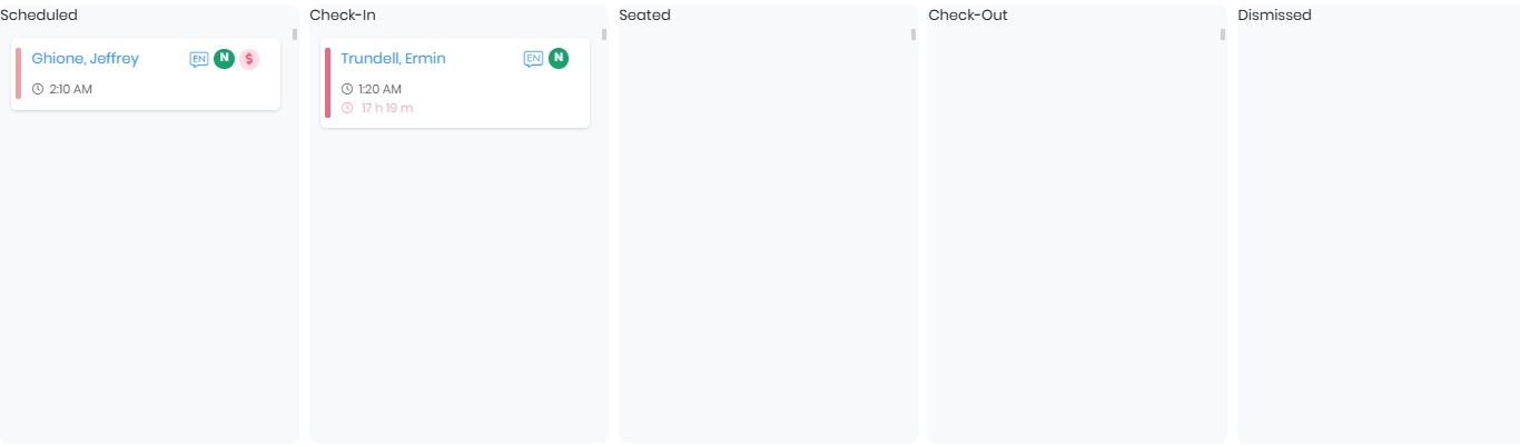 Checkout is placeholder for office to triage the patient before dismiss, Red color patient name signifies no future scheduled appointment