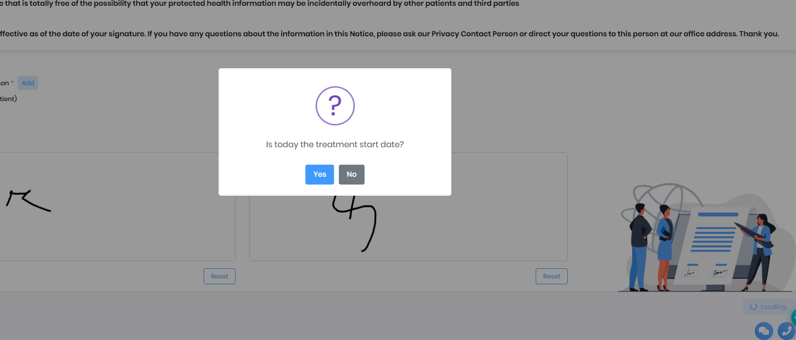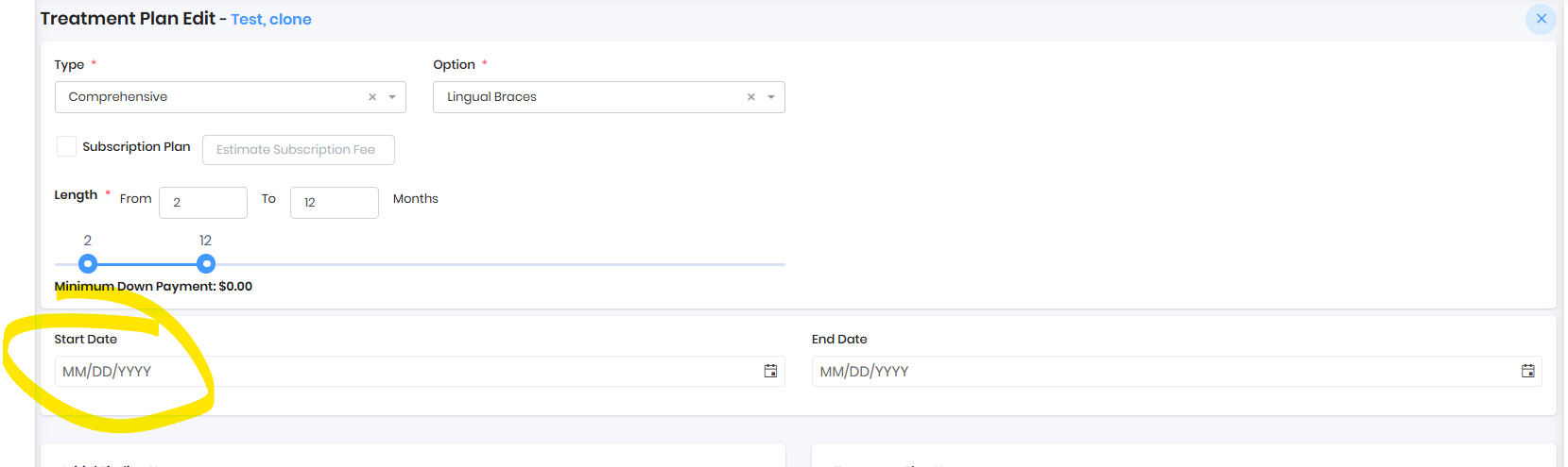 If 'No' is selected, the office can enter the start date in the Tx card when both the patient and the office are ready.