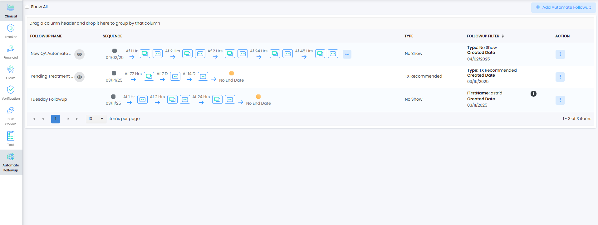 - The patients will be followed up in sequence. The automatic service will run everyday and will pick up the qualified patients.