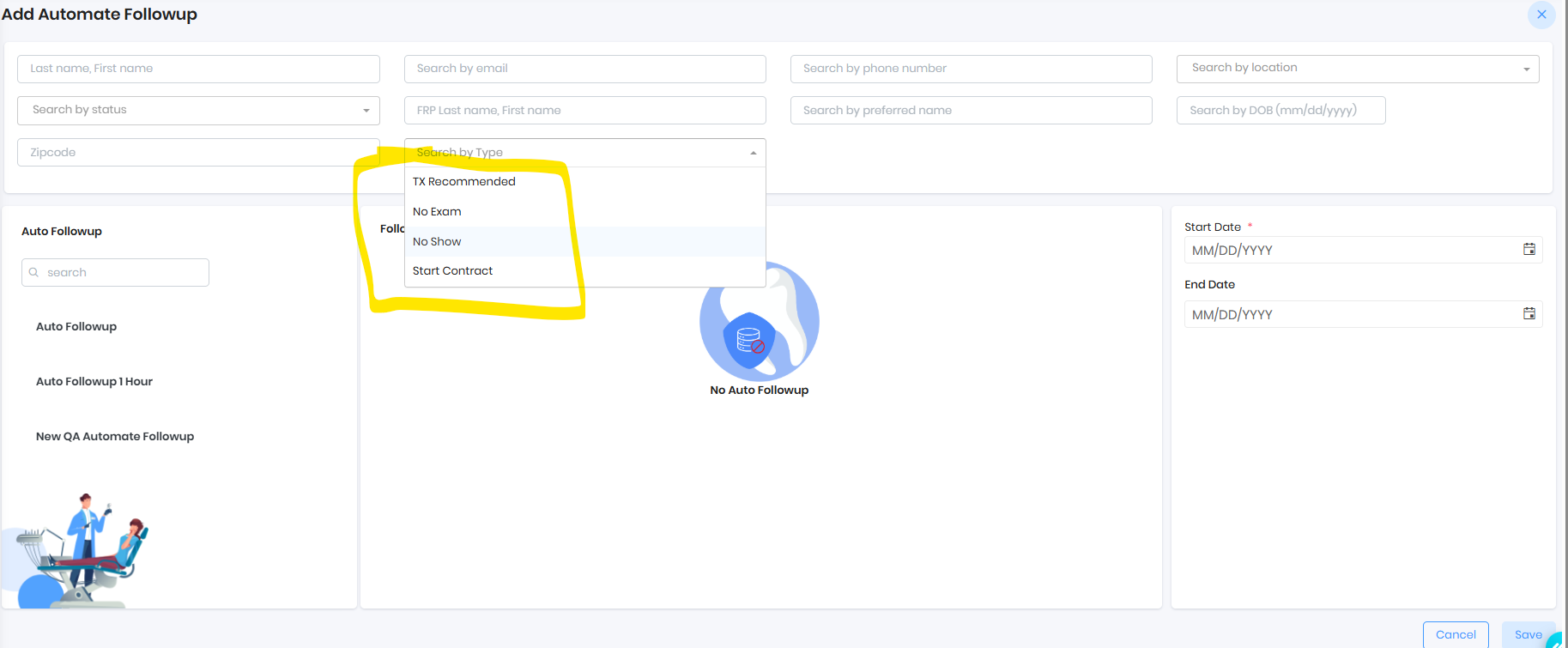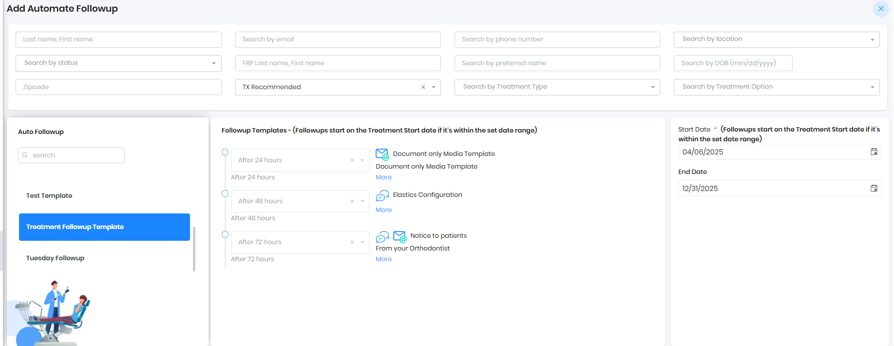 - All patients under the Treatment recommended and no future appointment will be chosen