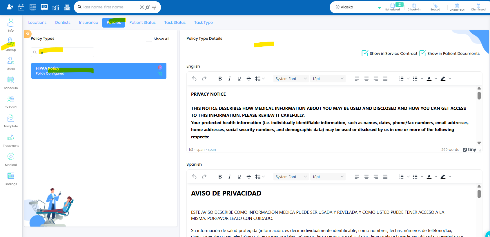 - During check in the policy will pop up for patient/FRP/PC signature.