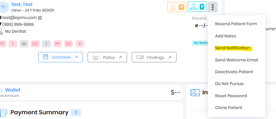 Practice staff can send the TextToPay or MiscTextToPayUrl message from within a patient’s record: