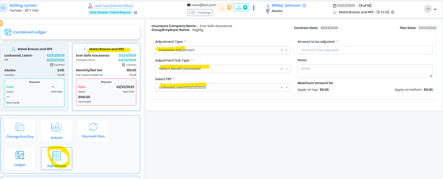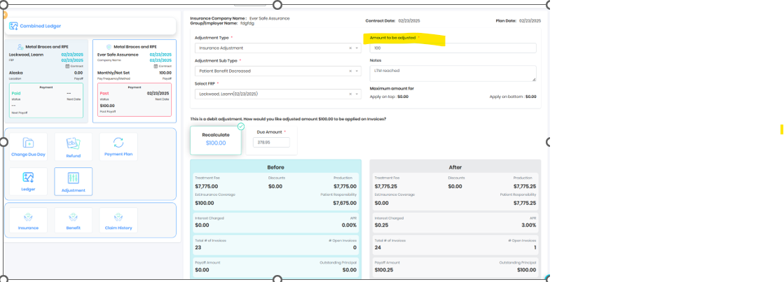 Adjustment was moved to patient