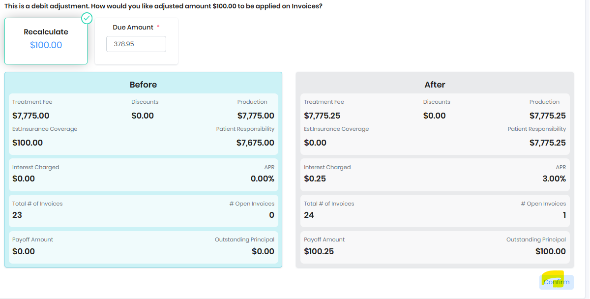 Confirm the adjustment