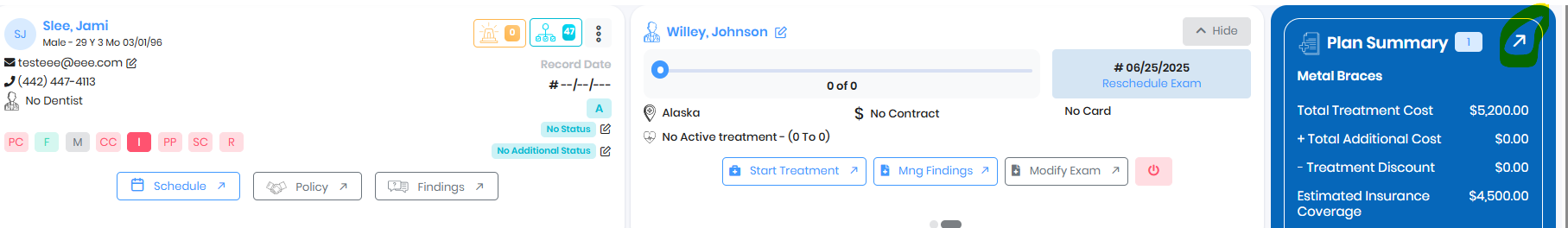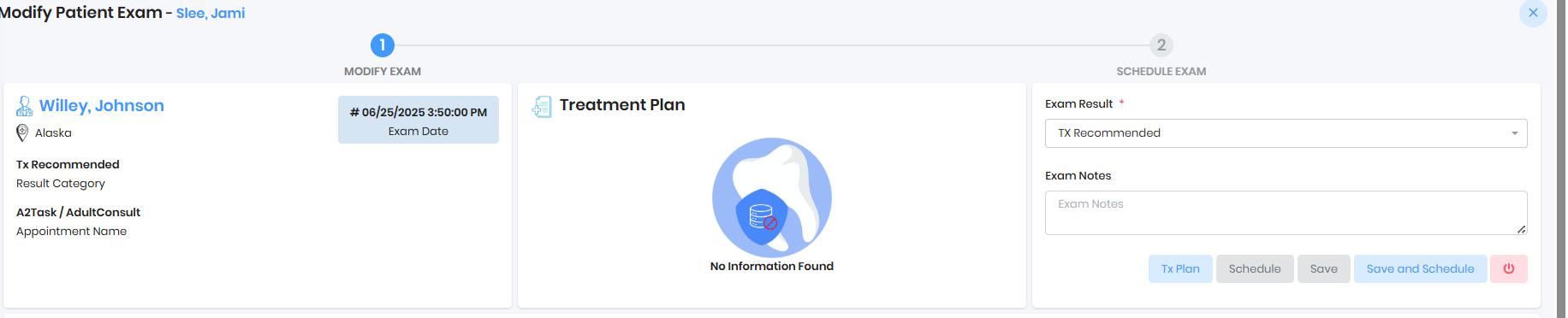 - Recommend Treatment Plan using Modify Exam update to Treatment Recommended