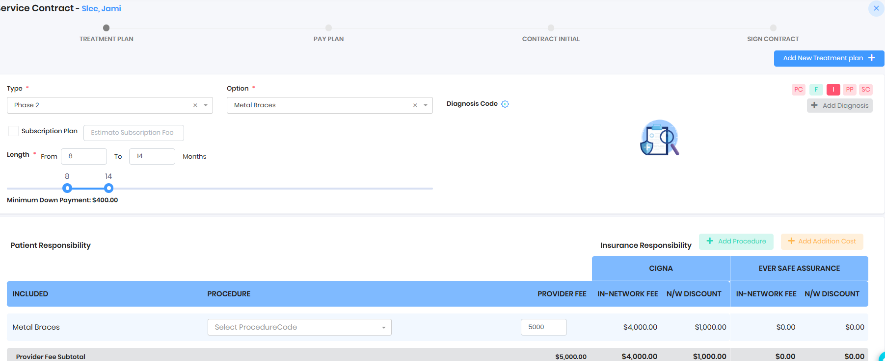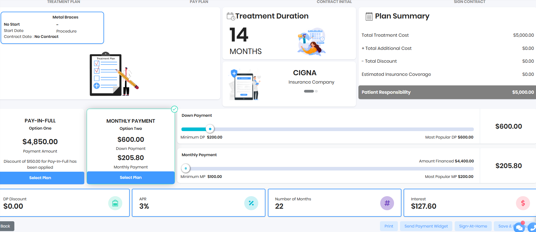 - Select Tx Plan button to navigate to recommend Tx plan and Sign Contract