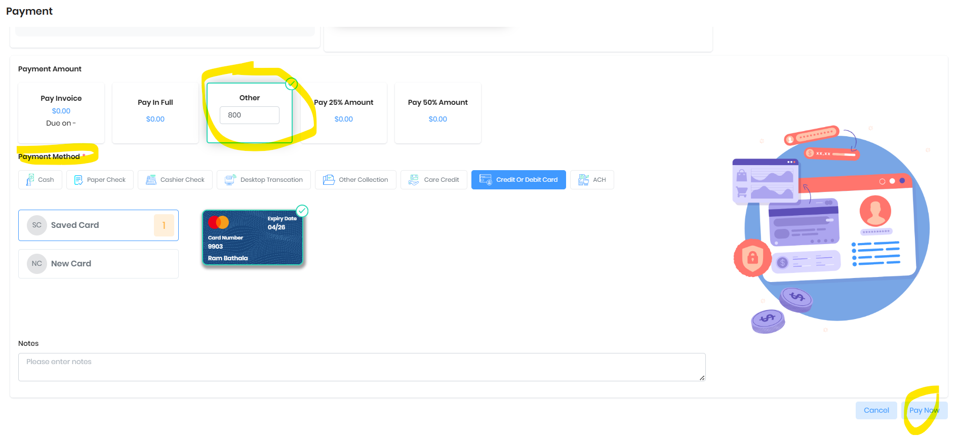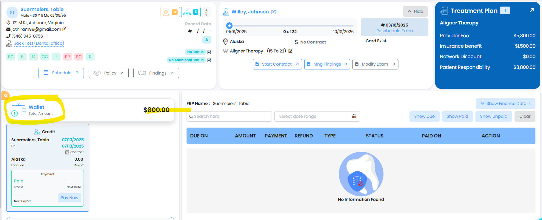 - The collected payment will go to patient wallet and the credit can be applied when contract is signed