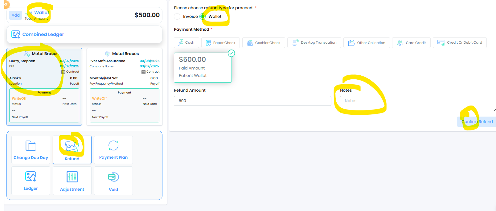 2. Choose **Refund**, then select **Wallet** for wallet refund OR