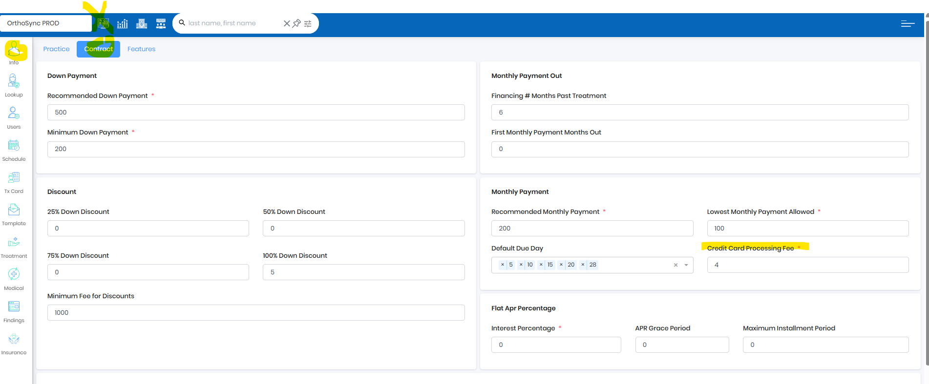 - Processing fee will be applied only on the Patient card transaction only for the Contract and Miscellaneous payments.