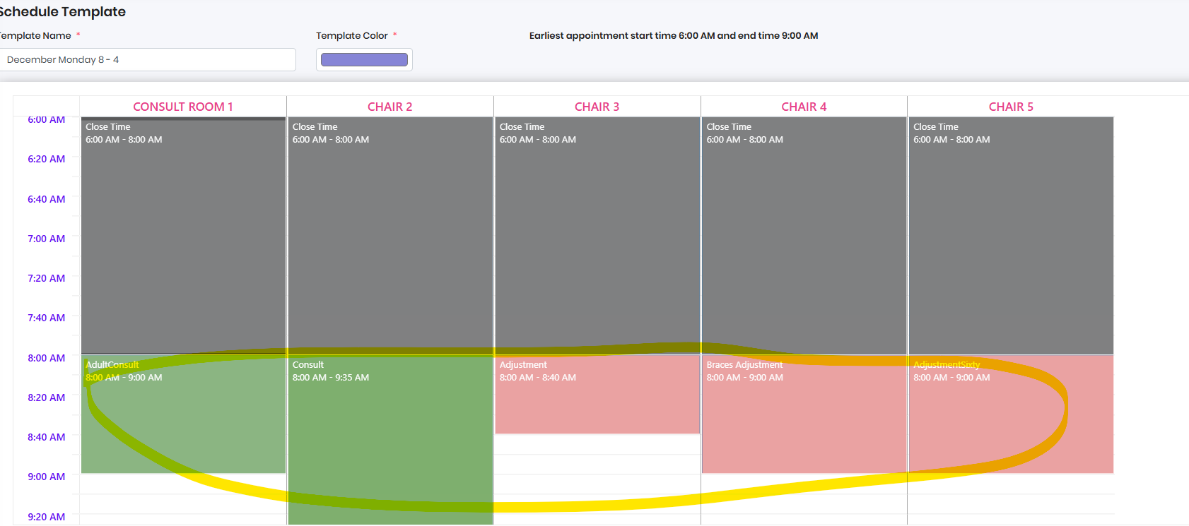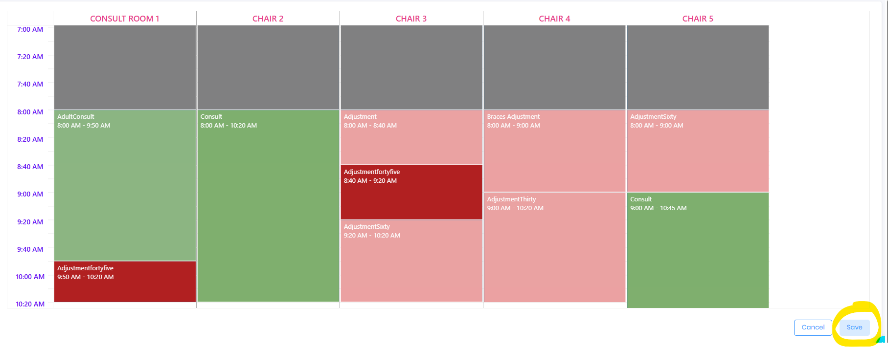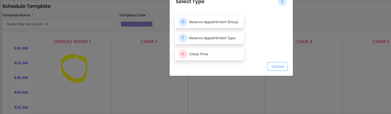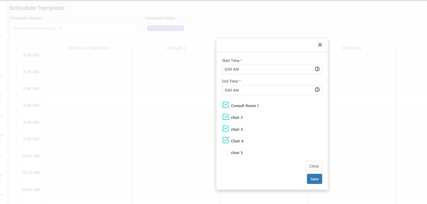 Configure Chair with Different Appointment Class or Type or Close time - Left Click on the Mouse