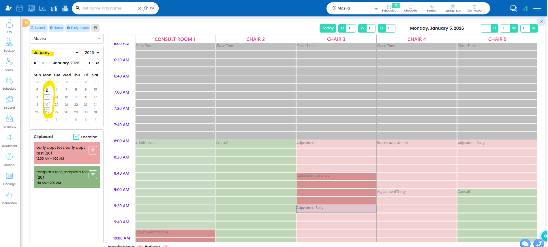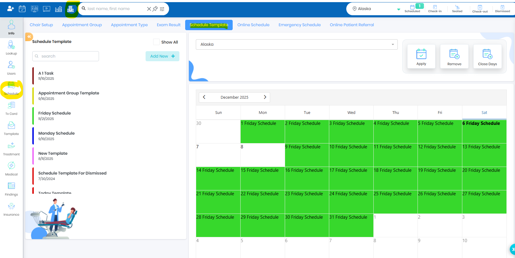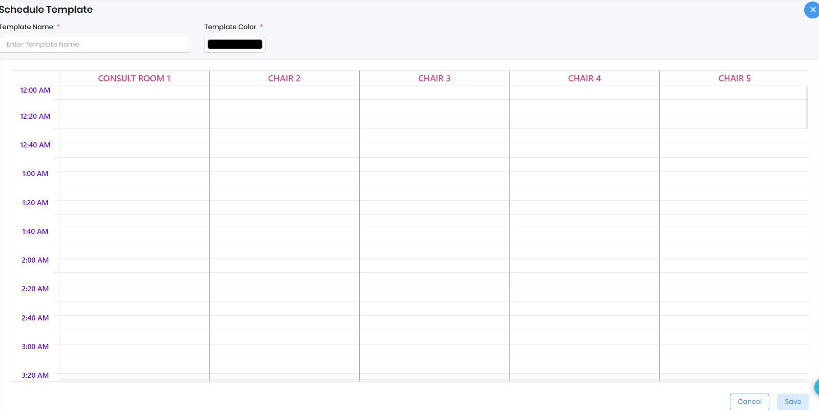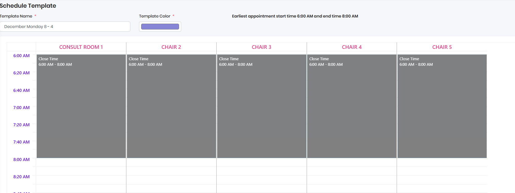 Configure Chair with Different Appointment Class or Type or Close time - Left Click on the Mouse