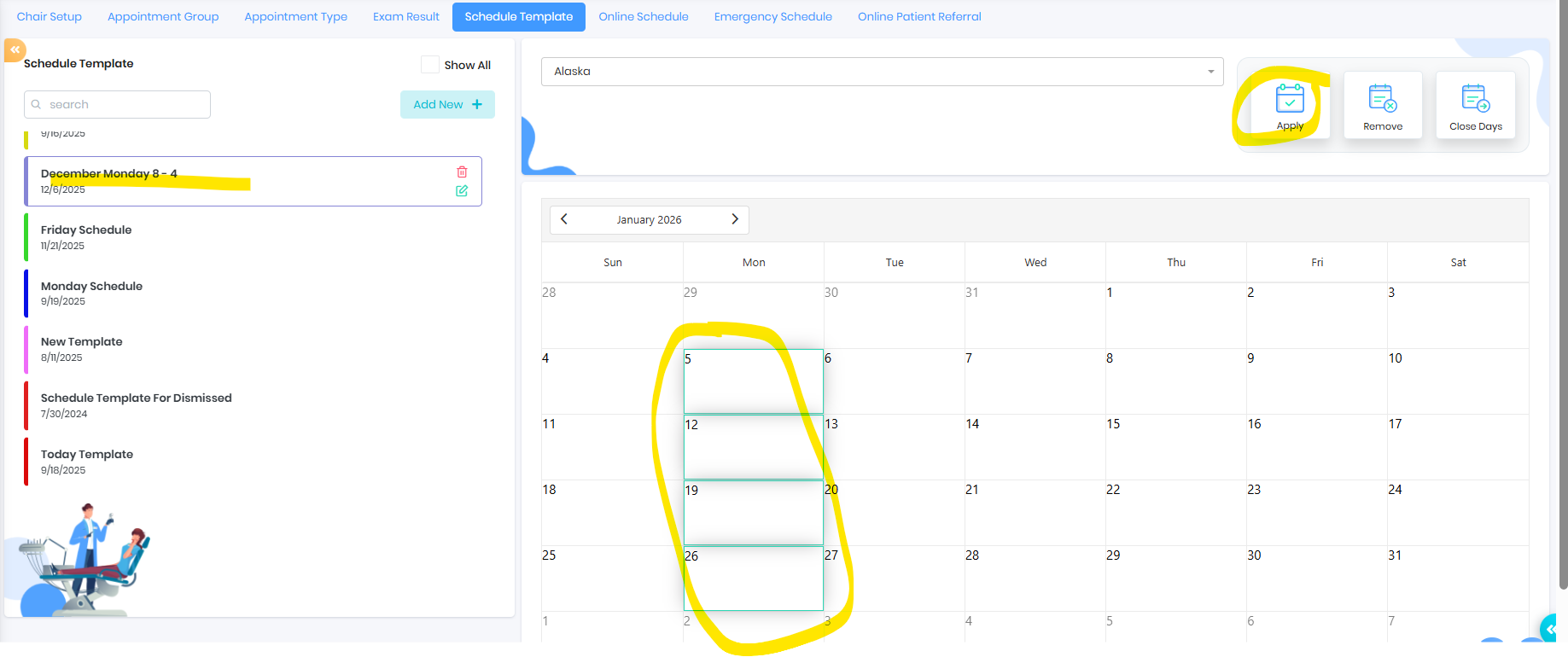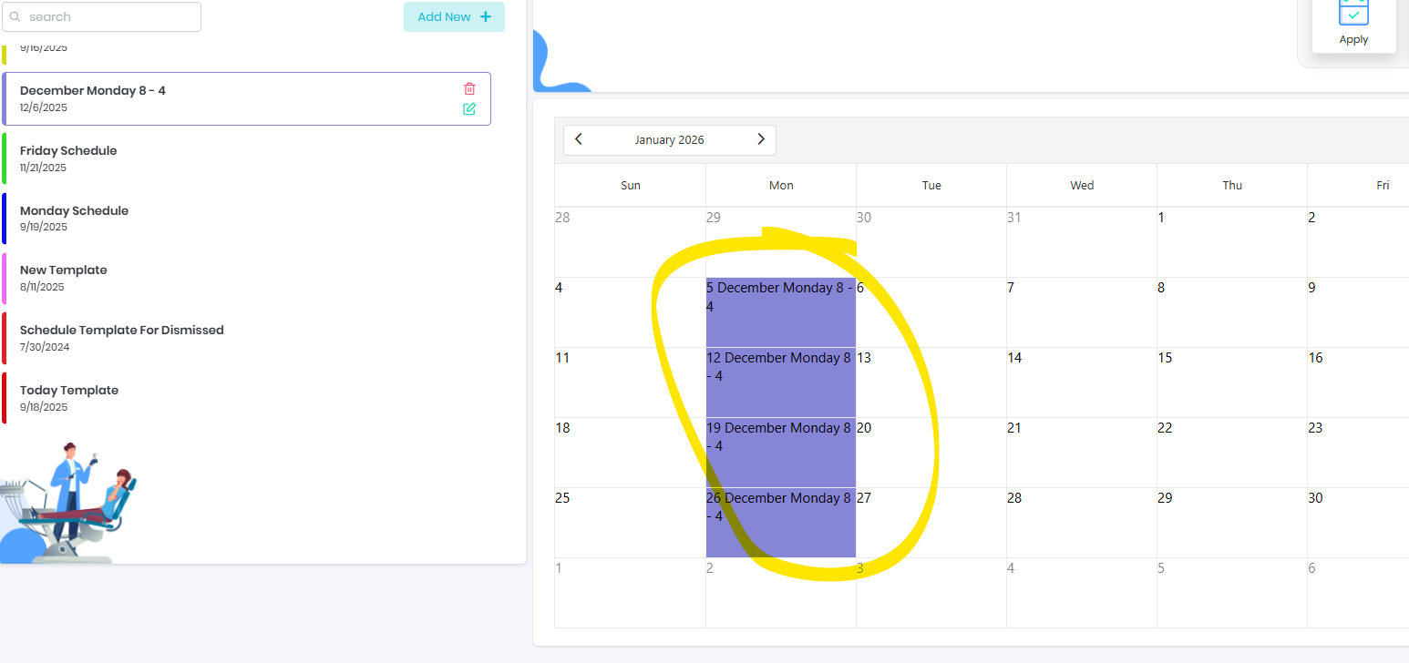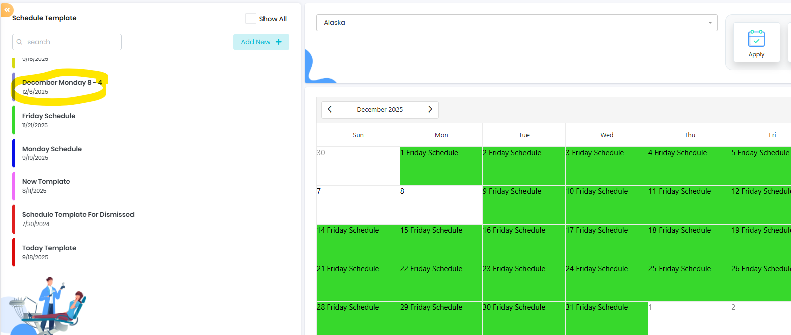 Apply specific template on daily schedule - Only one template can be applied on a day