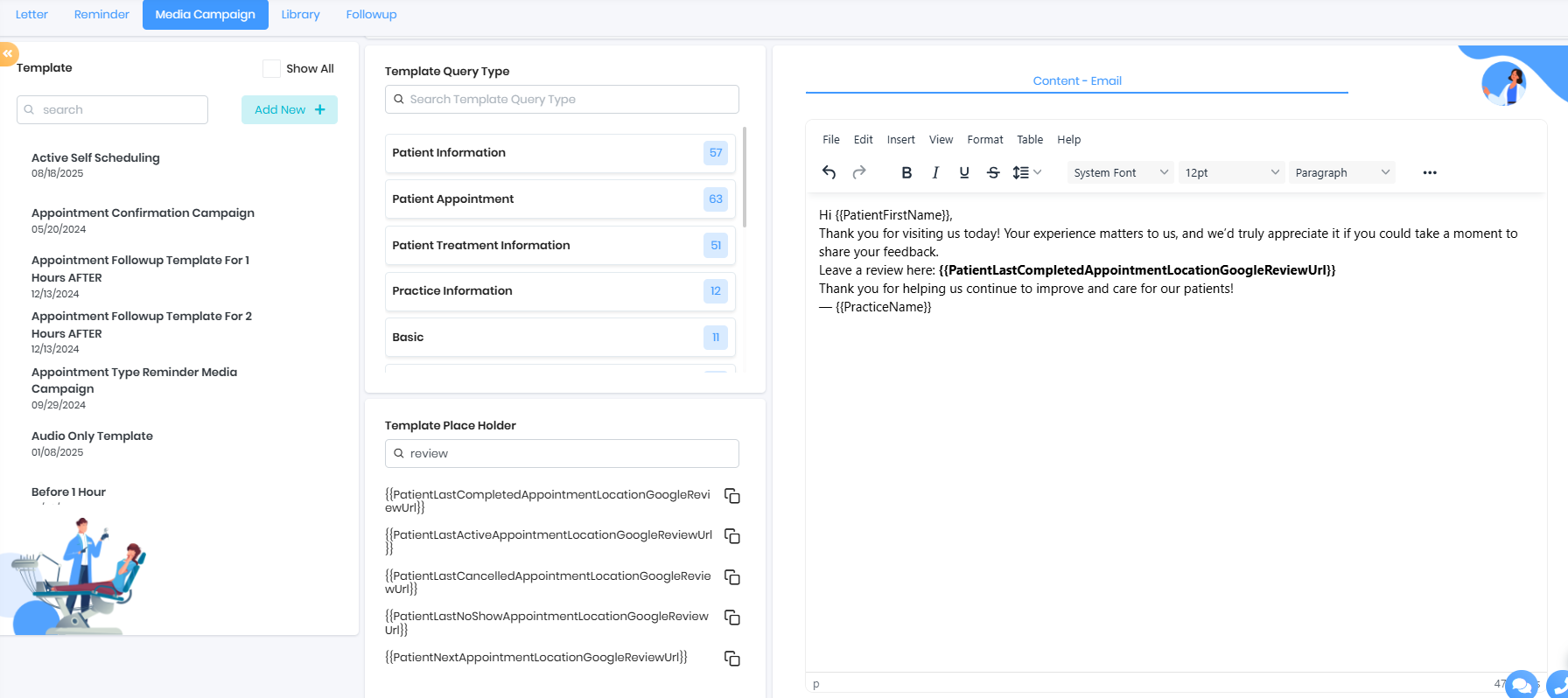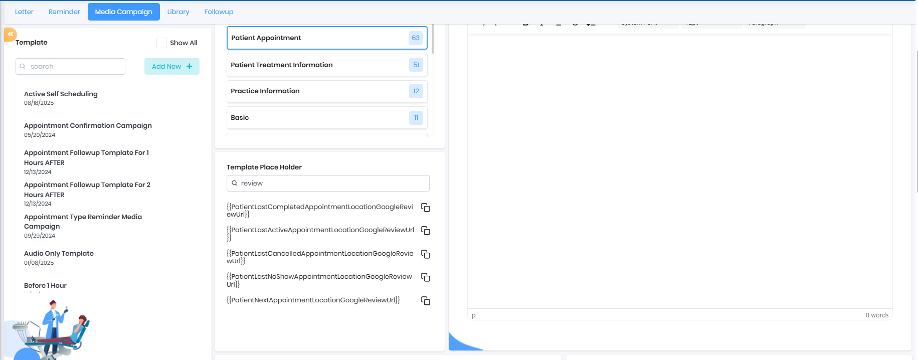 2. Set up the Media campaign template from the appointment type