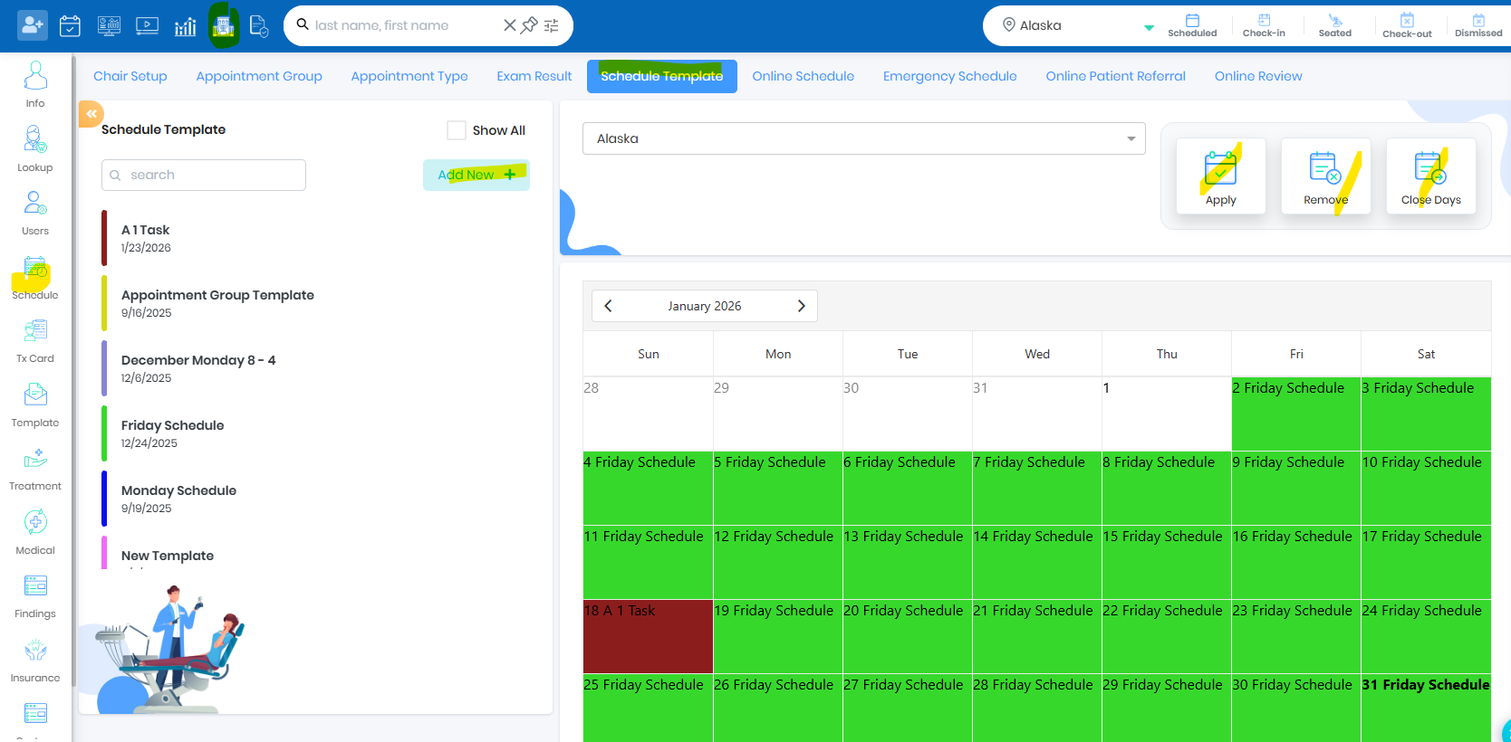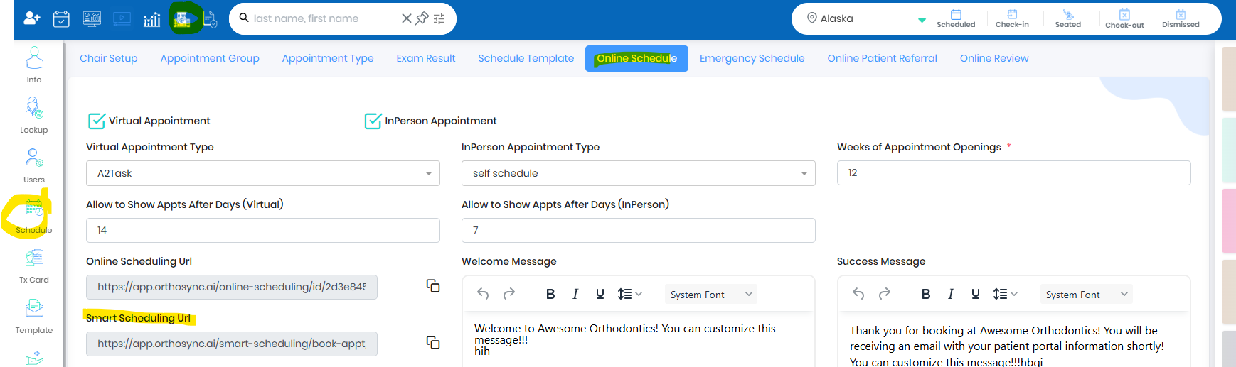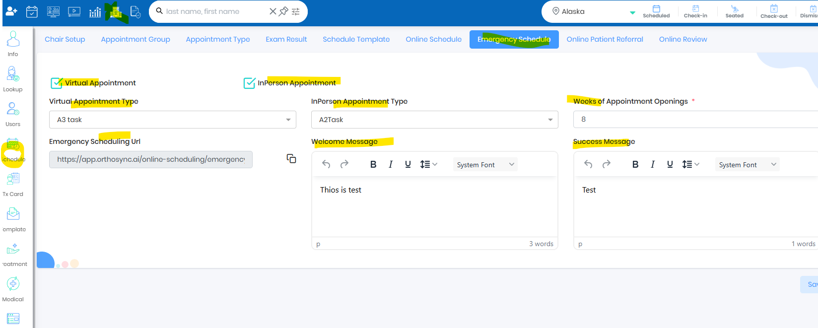 - Smart scheduling is one link which will show New Patient Online Scheduling , Emergency Scheduling and Active Patient Scheduling